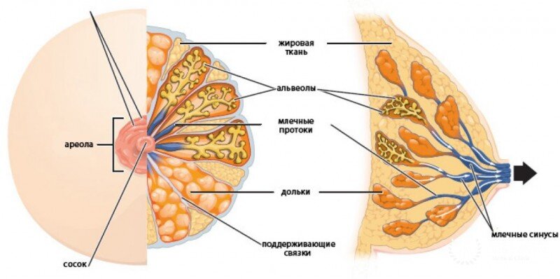 Существует несколько различных типов рака молочной железы. Они могут возникать в разных частях груди.